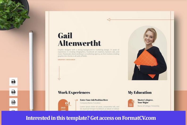 Download Resume CV in AI, EPS file types. You will be able to open this with Adobe Illustrator. You may refer the table below for additional details of this template. p>